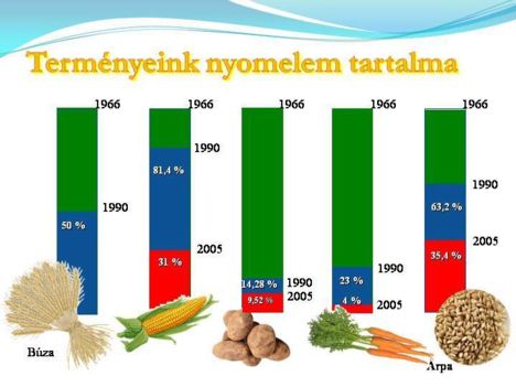 Az alábbi ábra mutatja, hogy 1966 - 2005 között hogyan változtak a tápanyag-értékek.